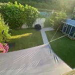The villa provides guests with media amenities like a flat-screen TV with satellite channels for additional comfort.